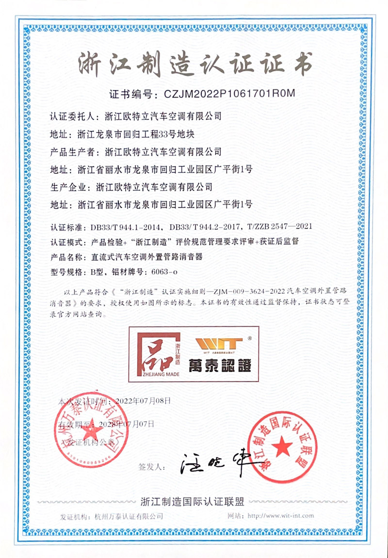 : 浙江歐特立汽車空調(diào)有限公司質(zhì)量誠信報告